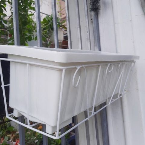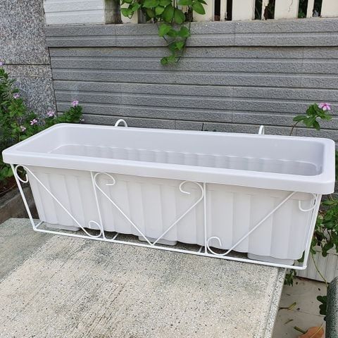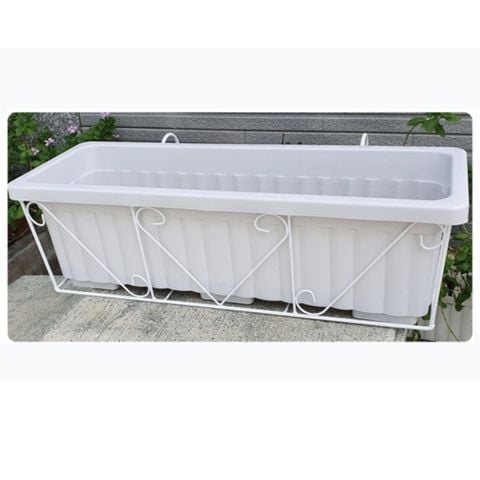 Chậu trồng rau, hoa lan can và Giá đỡ 63 (màu trắng) – Combo trồng trên lan can, tiết kiệm không gian, dễ sử dụng