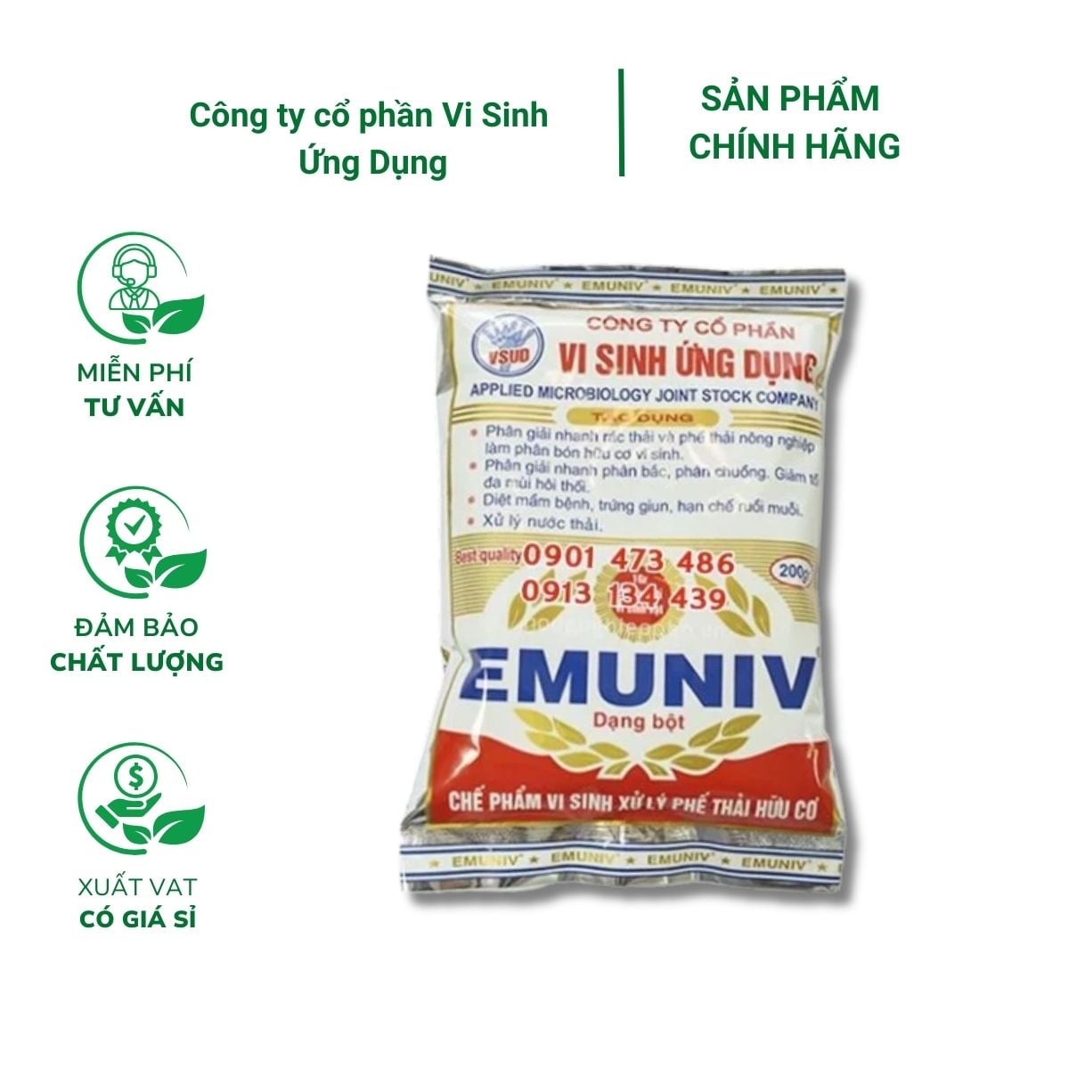 Chế phẩm EMUNIV (200g) – Ủ phân và rác hữu cơ hiệu quả, nhanh hoai mục