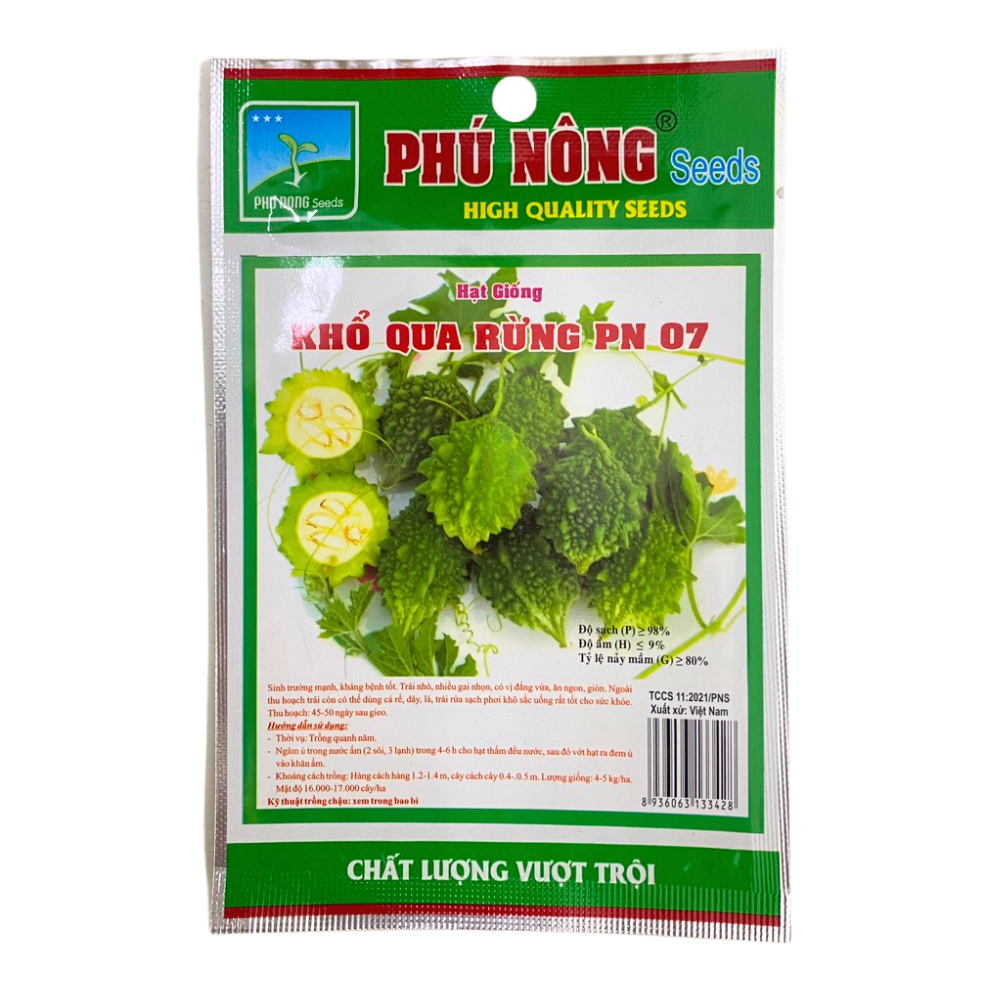 HẠT GIỐNG KHỔ QUA RỪNG PN 07Mô tả về sản phẩm: Khổ qua rừng có trái nhỏ, nhiều gai nhọn, vị đắng. Có thể dùng cả rễ, dây, lá, trái rửa sạch phơi khô sắc uống hoặc dùng chế biến nhiều món ăn giúp thanh nhiệt, tiêu độc, ổn định đường huyết, hỗ trợ tốt trong việc điều trị bệnh tiểu đường.Xuất xứ: Việt NamSản phẩm của: Công ty giống cây trồng Phú NôngQuy cách: Gói 1 gramMột số tiêu chuẩn: • Độ sạch: >99%• Tỉ lệ nảy mầm: >85%• Độ ẩm: <10%• Mật độ: cây x cây 0.4-0.5m, hàng x hàng 1-1.2m.• Thời gian thu hoạch: 38-40 ngày sau khi gieo. Công dụng của khổ qua rừng:• Khổ qua rừng là loại rau mát, có tính hàn, giải nhiệt cơ thể, bổ gan, tiêu độc, chống lão hóa và phòng ngừa các bệnh tim mạch, huyết áp cao… đặc biệt khổ qua rừng là thực phẩm rất tốt cho người bị tiểu đường.• Y học hiện đại cũng đã nghiên cứu và tìm ra nhiều tác dụng của khổ qua rừng, thậm chí cả trong việc chống lại một số căn bệnh nan y như ung thư.Hướng dẫn cách trồng khổ qua rừng tại nhà• Ủ hạt trước khi gieo: pha nước ấm, 3 nước sôi- 2 nước lạnh, cho hạt vào ngâm 4-5 giờ, vớt hạt ra ủ hạt bằng khăn ẩm, ủ thành từng lớp mỏng. Khoảng 36 giờ sau thấy hạt nứt mầm thì đem gieo.• Gieo hạt trong khay ươm hoặc chén ươm. Tưới ẩm đất và xới lỗ trước khi gieo. Gieo nông (1 cm), gieo đến đâu phủ kín hạt đến đó, không để hạt ra ánh nắng. Không nên ngâm hóa chất hay thuốc kích thích vì có thể làm hư mầm của hạt.• Sau 4-5 ngày hạt hình thành cây con. Tiếp tục chăm sóc đến 20-22 ngày, chọn cây khỏe mạnh chuyển qua chậu trồng có kích cỡ lớn (đường kính chậu trên 30cm và chiều cao chậu cũng trên 30cm). Mỗi chậu trồng từ 1-2 cây.• Có thể gieo hạt trong chậu lớn, 5-6 hạt trong 1 chậu, khi cây được 15-20 ngày thì loại bỏ những cây xấu, giữ lại 1-2 cây trong chậu.Lưu ý: Tưới nước mỗi ngày sau khi hạt đã nẩy mầm. Kiểm tra độ ẩm đất trong thời gian gieo hạt, tránh để đất quá khô hay quá ẩm hạt sẽ nẩy mầm kém.Hướng dẫn bảo quản• Bảo quản hạt giống nơi khô ráo, không để trực tiếp dưới ánh nắng hoặc nơi có nhiệt độ cao.• Chất lượng hạt giống tốt nhất khi bao bì còn nguyên vẹn.Nông Nghiệp Phố – chuỗi cửa hàng chuyên cung cấp hạt giống uy tín với hơn 1000+ loại giống.➤ Website: https://nongnghieppho.vn/➤ Hotline: 0865 399 086