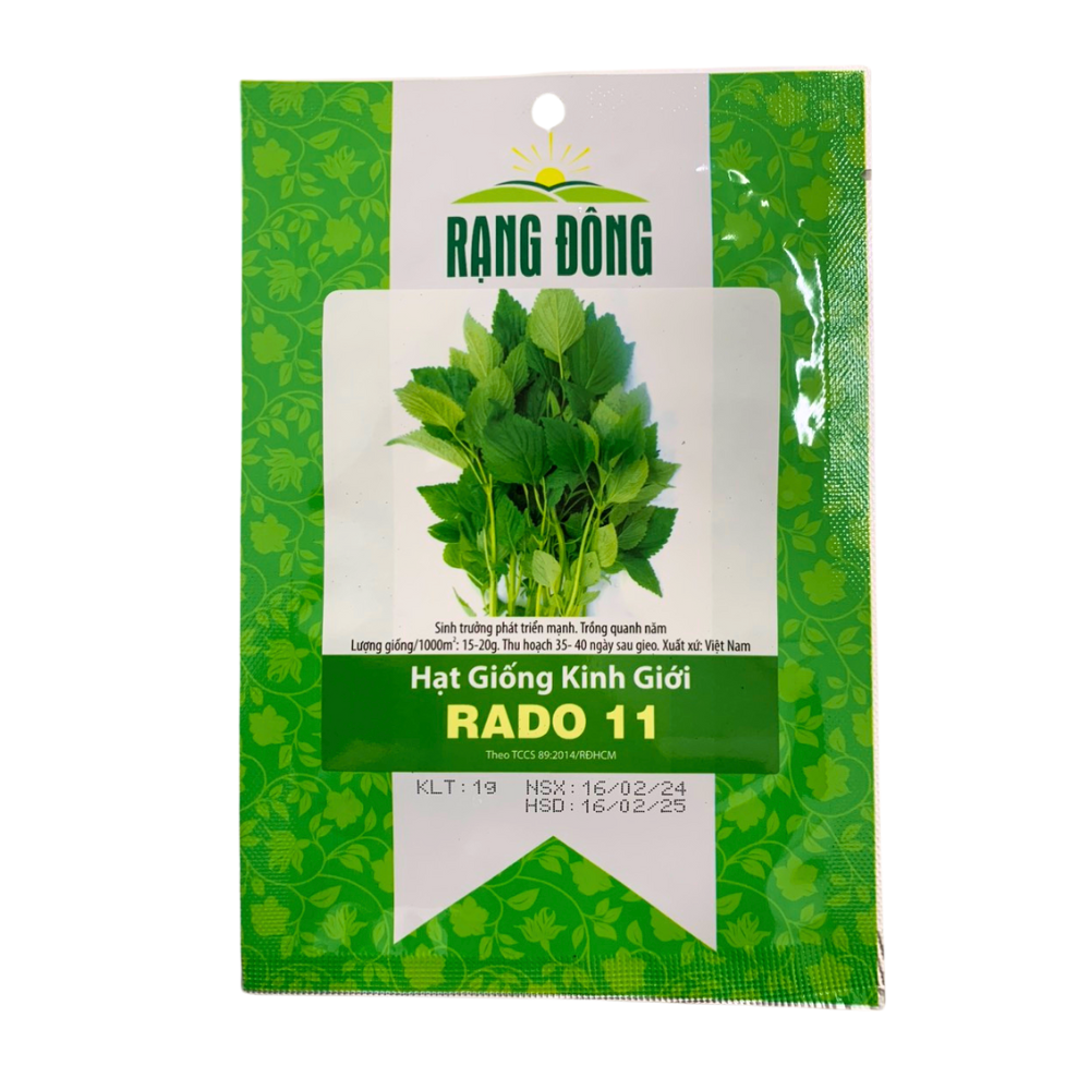 HẠT GIỐNG KINH GIỚI RADO 11 Mô tả sản phẩmHạt giống Kinh giới Rado 11 là giống rau phát triển mạnh, kháng bệnh tốt, thích nghi rộng. Rau kinh giới có dạng cây thân bụi, lá trung bình, màu xanh nhạt, rìa lá răng cưa, thơm ngon. Xuất xứ: CÔNG TY TNHH MTV HẠT GIỐNG RẠNG ĐÔNGQuy cách đóng gói: Gói 1 gram.Một số thông tin • Tỷ lệ nảy mầm: >85%.• Ðộ sạch: >99%.• Độ ẩm: <10%.Hướng dẫn cách trồng • Thời gian thu hoạch: 35-40 ngày sau gieo, cắt cành nhiều lần hoặc ngắt đọt. • Khoảng cách trồng: 20x20cm, lượng giống/1000m2: 15-20 gram. 1/ Đất trồng: • Đất phải đủ dinh dưỡng, có độ PH phù hợp và độ thoát nước tốt. Tỷ lệ trọn thông thường: đất thịt 50% : phân hữu cơ 20% (trùn quế, phân bò, phân gà,…) : mụn dừa : trấu hun. Hoặc sử dụng đất trồng rau Sfarm. • Sử dụng thêm nấm đối kháng Trichoderma để bổ sung vi sinh có lợi cho đất. 2/ Ánh sáng: trồng nơi có ánh sáng đầy đủ. 3/ Chăm sóc: • Tưới nước: tùy vào thời tiết mà tưới nước cho phù hợp, tránh tưới và bạn đêm dễ gây nấm bệnh cho cây, trời nắng bạn tưới 2 ngày/lần, nếu đất ẩm thì 1 lần/ngày. • Phân bón: sau 10 ngày chuyển chậu, bạn bắt đầu thêm phân bón hữu cơ cho cây, mỗi 10 ngày bổ sung thêm cho cây.• Phòng trừ sâu bệnh: bằng cách sử dụng thuốc BVTV. 4/ Thu hoạch • Sau khoảng 40 ngày trồng, bạn có thể cắt cành kinh giới và chưa lại các nách lá có chồi non để cây tiếp tục phát triển. Hướng dẫn bảo quản• Bảo quản hạt giống nơi khô ráo, không để trực tiếp dưới ánh nắng hoặc nơi có nhiệt độ cao.• Chất lượng hạt giống tốt nhất khi bao bì còn nguyên vẹn.Nông Nghiệp Phố – chuỗi cửa hàng chuyên cung cấp hạt giống uy tín với hơn 1000+ loại giống.➤ Website: https://nongnghieppho.vn/➤ Hotline: 0865 399 086
