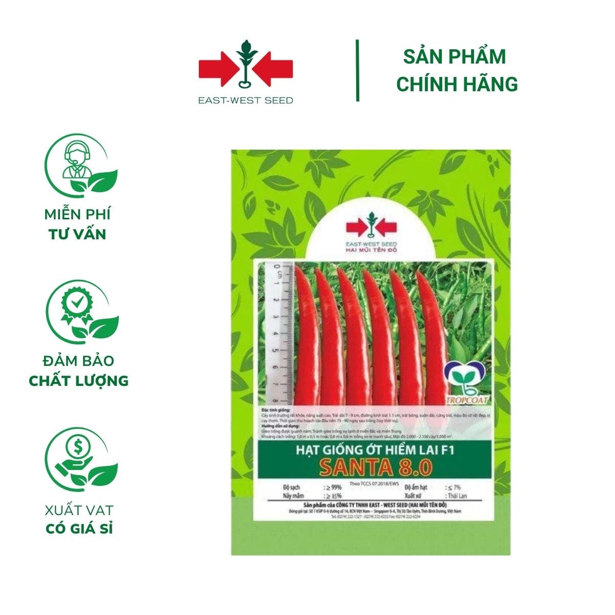Đặt mua Hạt giống Ớt hiểm lai F1 Santa 8.0 East-West Seed (Hai Mũi Tên Đỏ) - Gói 10 hạt