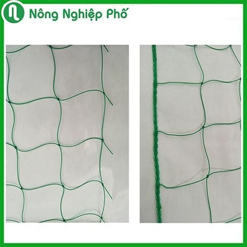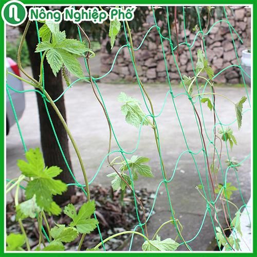 Lưới làm giàn leo nhập khẩu Đài Loan màu xanh (10x10cm) – Độ bền cao, dễ sử dụng Mô tả: Lưới làm giàn leo là một sản phẩm mới đang được áp dụng vào kỹ thuật nông nghiệp. Sản phẩm này chuyên dùng cho các loại cây dây leo như su su, dưa, gấc, bí xanh…, thuận tiện và làm tăng năng xuất cây trồng rất rõ rệt, sau khi làm khung hoặc đóng cọc song ta chỉ việc dăng lưới theo khung.Xuất xứ: Nhập khẩu Đài Loan.Chất liệu: 100% polimer dẻo dai, bền bỉ.Kích thước ô lưới: 10cm x 10cm.Khổ lưới: 90x180cm, 180x180cm, 360x180cm.Đường kính sợi: 2mm.Màu: Màu xanhThời gian sử dụng: có thể sử dụng lên tới 5 năm.Công dụng – Vai trò• Định hướng phát triển cho cây thân leo như bầu bí, su su, mướp,…• Nâng đỡ, giúp dây leo không bị đổ, nghiêng trong quá trình phát triển.• Không chỉ là hỗ trợ cho quá trình phát triển của cây mà còn góp phần làm tăng thêm cảm hứng cho việc làm vườn của bạn.• Bên cạnh đó lưới cũng dễ dàng sử dụng, độ bên cao, tiết kiệm chi phí, tiết kiệm thời gian chăm sóc cây trồng cho bạn.