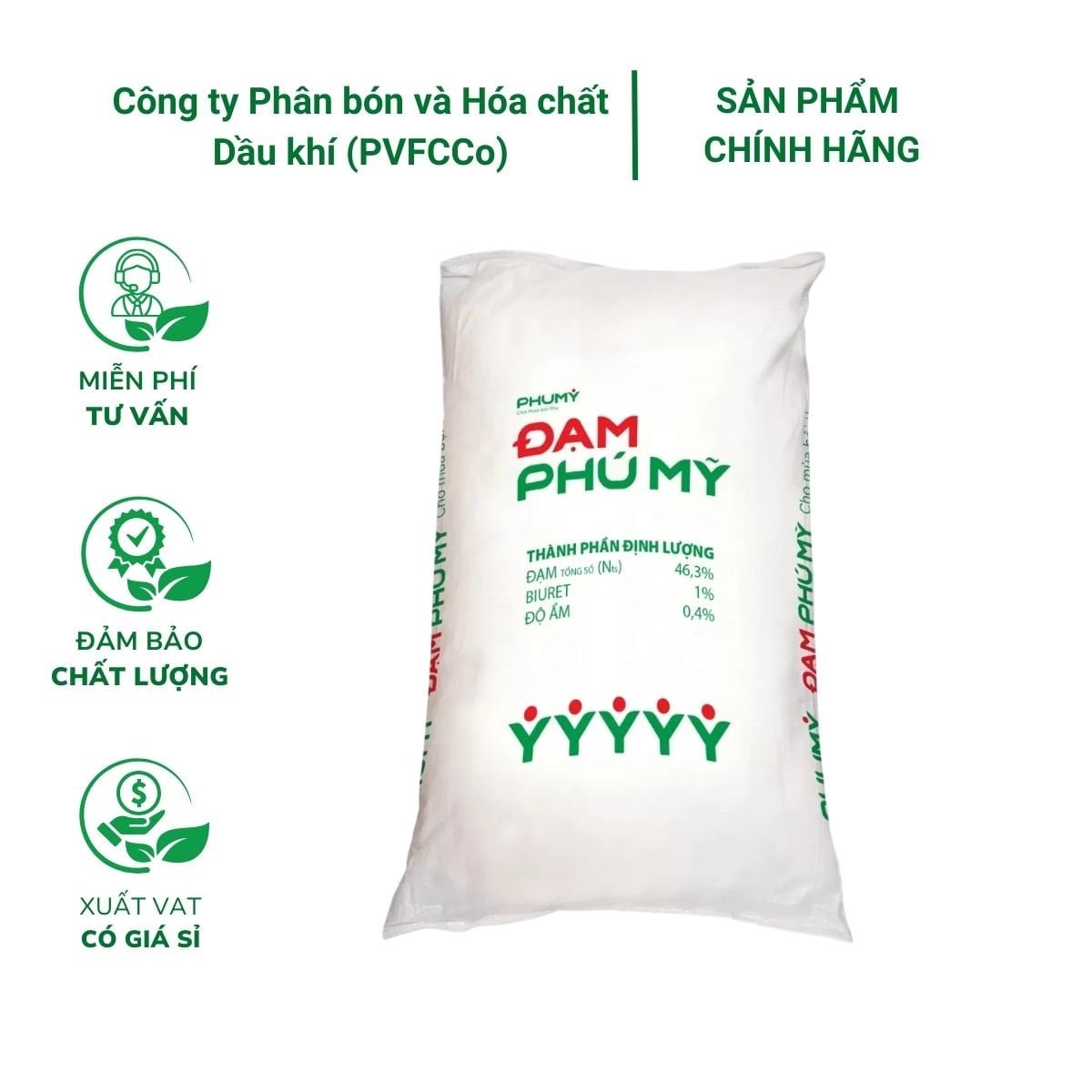 Phân đạm Urea Phú Mỹ (Bao 50kg) – Cung cấp đạm, tăng sinh trưởng thân, lá Mô tả sản phẩmPhân đạm Urea Phú Mỹ là một trong những sản phẩm phân bón chất lượng cao của Tổng công ty Phân bón và Hóa chất Dầu khí (PVFCCo). Phân đạm Phú Mỹ có hàm lượng nitơ cao (46%), giúp cây trồng phát triển tốt, tăng năng suất và chất lượng nông sản. Phân đạm Phú Mỹ còn có ưu điểm là tan nhanh trong nước, dễ bón, không gây ô nhiễm môi trường và an toàn cho người sử dụng.Phân đạm Phú Mỹ đã được cấp chứng nhận ISO 9001:2015 về hệ thống quản lý chất lượng, ISO 14001:2015 về hệ thống quản lý môi trường, OHSAS 18001:2007 về hệ thống quản lý an toàn và sức khỏe lao động. Sản phẩm cũng đã được kiểm nghiệm và cấp giấy chứng nhận phù hợp tiêu chuẩn quốc gia về phân bón hữu cơ và vô cơ.Xuất xứ: Việt Nam.Quy cách: Bao 50kg.Thành phần của phân đạm Phú Mỹ• Đạm: 46%.• Biuret: 1%.• Độ ẩm: 0.4%.Chức năng – công dụng của phân đạmCung cấp nguồn đạm thiết yếu cho cây trồng một các tối đa và đầy đủ nhất. Giúp cây trồng sinh trưởng mạnh, phát triển chồi lá và xanh tươi tốt hơn.Công dụng của phân đạm khi bón cho cây trồng• Phân đạm là loại phân bón không thể thiếu trong quá trình canh tác, sản xuất nông nghiệp, đồng thời đóng vai trò quan trọng trong sự sinh trưởng và năng suất thu hoạch mùa vụ.• Thành phần đạm trong phân bón sẽ tham gia vào thành phần chính của clorophin, prôtit, các axit amin, các enzym và nhiều loại vitamin trong cây.• Bón phân đạm sẽ thúc đẩy quá trình tăng trưởng của cây, giúp cây ra nhiều nhánh, phân cành, ra lá nhiều, lá cây có kích thước to, màu xanh, thực hiện chức năng quang hợp tốt, do đó, quá trình chuyển hóa dinh dưỡng được diễn ra thuận lợi, nâng cao năng suất cho cây trồng.• Trong giai đoạn sinh trưởng, việc bón phân đạm cho cây trồng sẽ đáp ứng được nhu cầu dinh dưỡng của cây, đặc biệt là giai đoạn cây sinh trưởng mạnh. Trong đó, các loại cây thường cần hàm lượng dinh dưỡng đạm rất nhiều đó chính là các loại cây rau ăn lá như rau cải, cải bắp,…Ưu điểm của phân đạm Phú Mỹ so với các loại phân bón khác• Phân đạm Phú Mỹ có hàm lượng nitơ cao (46%), giúp cây trồng sinh trưởng mạnh, tăng năng suất và chất lượng.• Phân đạm Phú Mỹ có hình dạng hạt tròn, mịn, không bị vón cục hay dính, dễ sử dụng và bảo quản.• Phân đạm Phú Mỹ có màu xanh lá cây, biểu tượng của sự sống và sự bền vững.Những lưu ý khi sử dụng phân Đạm• Không nên bón quá nhiều phân đạm Phú Mỹ, vì có thể gây cháy lá, rụng hoa, rụng quả hoặc giảm chất lượng sản phẩm.• Không nên bón phân gần gốc cây trồng, vì có thể gây hại cho rễ cây.• Không nên trộn với các loại phân bón khác có chứa canxi (Ca), magie (Mg) hoặc sunfat (SO4), vì có thể gây kết tủa và mất hiệu quả của phân bón.• Không nên để phân đạm Phú Mỹ tiếp xúc với da, mắt hoặc niêm mạc, vì có thể gây kích ứng hoặc viêm. Nếu xảy ra tình huống này, bạn nên rửa sạch với nước và đi khám bác sĩ ngay.• Không nên để phân ở nơi ẩm ướt, nóng bức hoặc có ngọn lửa, vì có thể gây cháy nổ hoặc hóa chất.• Không nên để ở nơi trẻ em hoặc vật nuôi có thể tiếp cận, vì có thể gây ngộ độc.Nông Nghiệp Phố- Địa chỉ mua sỉ đạm Phú Mỹ được nhiều người tin chọnNhu cầu sử dụng đạm Phú Mỹ ngày càng tăng cao, tìm kiếm một địa chỉ cung cấp sỉ uy tín và chất lượng là điều mà nhiều người quan tâm. Nông Nghiệp Phố chính là cửa hàng bán sỉ các loại đạm lựa chọn hàng đầu, được nhiều khách hàng tin tưởng và lựa chọn.Mua sỉ đạm Phú Mỹ tại cửa hàng Nông Nghiệp Phố với nhiều chính sách hấp dẫn Ưu điểm khi mua sỉ đạm Phú Mỹ tại Nông Nghiệp PhốSản phẩm chính hãng, chất lượng đảm bảo: Nông Nghiệp Phố cam kết cung cấp đạm Phú Mỹ chính hãng, có nguồn gốc xuất xứ rõ ràng, đảm bảo chất lượng và hiệu quả sử dụng.Giá cả cạnh tranh: Nhờ nhập hàng trực tiếp từ nhà sản xuất với số lượng lớn, Nông Nghiệp Phố có thể đưa ra mức giá sỉ cạnh tranh, giúp khách hàng tiết kiệm chi phí.Giao hàng nhanh chóng, tiện lợi: Nông Nghiệp Phố có hệ thống vận chuyển chuyên nghiệp, đảm bảo giao hàng nhanh chóng và đúng hẹn đến tận nơi cho khách hàng trên toàn quốc.Nông Nghiệp Phố – Chuỗi cửa hàng chuyên cung cấp phân bón chất lượng, uy tín và hàng đầu trên cả nước.➤ Website: https://nongnghieppho.vn/➤ Hotline: 0865 399 086