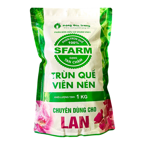 Phân trùn quế viên nén SFARM cho lan – Tan chậm, bền dinh dưỡng, hạn chế nấm bệnh1. Mô tả sản phẩmPhân trùn quế SFARM viên nén chuyên dùng cho lan, đây là phân trùn quế được sản xuất dưới dạng viên nén tan chậm có hình trụ tròn, nguồn nguyên liệu đầu vào khi sản xuất phân là phân trùn quế nguyên chất 100% đã qua giảm ẩm, sàng lọc và ray mịn. Vì vậy, phân trùn quế SFARM viên nén có bề mặt viên trơn láng, mịn đều và khi tan sẽ hạn chế thấp nhất việc tồn tại tạp chất.Phân trùn quế cho lan viên nén không mùi, thân thiện với môi trường và người sử dụng, không gặp tình trạng nóng hay chết cây trong quá trình sử dụng.Với việc được sản xuất dưới dạng viên nén tan chậm, phân trùn quế viên nén cho lan giúp kéo dài thời gian sử dụng phân kéo dài đến 60 ngày, tăng hiệu quả sử dụng, giảm thất thoát khi bón, cũng như giúp quá trình bón phân trở nên tiện lợi và dễ dàng nhất.2. Thông tin sản phẩm phân trùn quế viên nén SfarmXuất xứ: Công ty TNHH SX-TM-DV Đặng Gia TrangCông ty Đặng Gia Trang là một công ty chuyên sản xuất và cung cấp các sản phẩm phân bón hữu cơ, giá thể, đất sạch hữu cơ, mụn dừa xử lý, chế phẩm sinh học,… nhằm đáp ứng nhu cầu nông nghiệp sạch, bền vững tại thành thị cũng như nông nghiệp hữu cơ. Công ty được thành lập vào năm 2013 với thương hiệu SFARM, là thương hiệu hàng đầu tại Việt Nam về sản xuất đất sạch và phân trùn quế Đặng Gia Trang cao cấp. Công ty cũng có đội ngũ kỹ sư chuyên ngành và tư vấn viên nhiệt tình để hỗ trợ khách hàng trong quá trình sử dụng sản phẩm.Khối lượng: Túi zip 1kg, và bao 25kg.Thành phần: Phân trùn quế nguyên chất 100%, đã qua giảm ẩm, ray mịn và sàng lọc.Hình dạng: Viên hình trụ tròn, dài khoảng 2cm.Màu sắc: Màu nâu xám, bề mặt trơn nhẵn, chất phân mịn và đều.Độ ẩm: khoảng 5% – 10%.Đóng gói: Dạng túi zip dễ dàng sử dụng và bảo quản.Thời gian tan: 60 ngày. 3. Chức năng – công dụng của phân trùn quế viên nén • Cung cấp nguồn dinh dưỡng đầy đủ, đa dạng, an toàn cho cây và đất.• Kích thích cây nảy chồi, tạo rễ và ra hoa nhờ Acid Humic, Acid Fulvic, IAA,… có trong phân.• Cung cấp hệ VSV có lợi cho đất và vùng rễ cây, hạn chế ảnh hưởng tiêu cực từ các tác nhân gây hại như vi khuẩn, nấm, virus…• Cải tạo đất trồng hiệu quả, cân bằng pH đất ở mức trung tính.• Lành tính với cây trồng, không gặp tình trạng nóng – chết cây khi bón quá liều.• An toàn cho sức khỏe người sử dụng và thân thiện với môi trường.4. Đối tượng cây trồng sử dụng• Phân trùn quế viên nén thích hợp với nhiều đối tượng cây trồng, trong đó đặc biệt thích hợp sử dụng cho hoa lan, hoa hồng, kiểng lá, cây trồng chậu,… • Ngoài ra, đây còn là loại phân được sử dụng trộn vào giá thể trồng ở các mô hình canh tác theo hướng an toàn, hữu cơ trên nhiều đối tượng cây trồng.5. Cách sử dụng dịch trùn quế cho hoa lan• Cho phân vào túi lưới và đặt/gắn lên giò hoặc rải phân trên bề mặt giò, xung quanh gốc lan.• Bón định kỳ khoảng 50-60 ngày.6. Hướng dẫn bảo quản phân trùn quế cho hoa lanSau khi sử dụng xong bạn đóng túi zip lại, đặt nơi khô ráo, thoáng mát.Tránh xa tầm tay trẻ em.Nông Nghiệp Phố – chuỗi cửa hàng chuyên cung cấp phân bón hữu cơ chất lượng, uy tín và hàng đầu trên cả nước.➤ Website: https://nongnghieppho.vn/➤ Hotline: 0865 399 086
